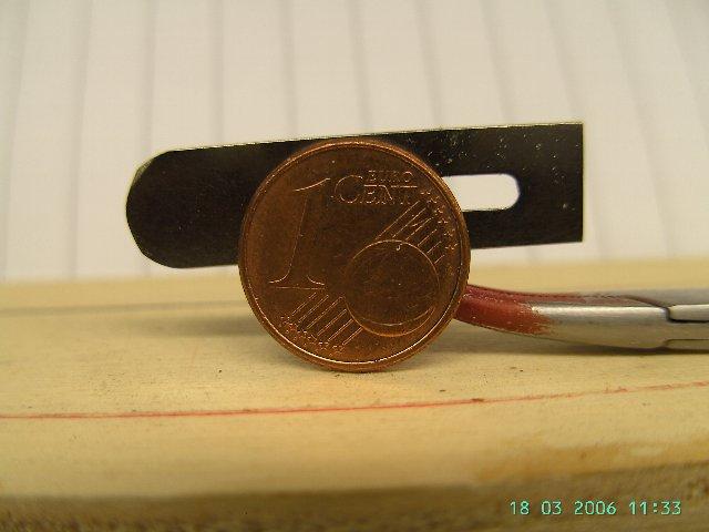 Eine Bastelmesserklinge umgeschliffen als Ziehklinge (nicht entgraten, durch den scharfen Schleifgrat kann man erst gut schaben)