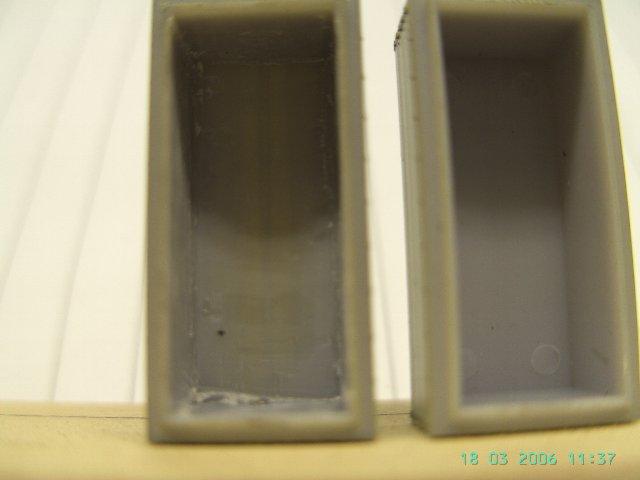 links die geschabte LKW Plane(man sieht schon die Planenstruktur der Oberseite durchscheinen), rechts die ungeschabte vom Hänger