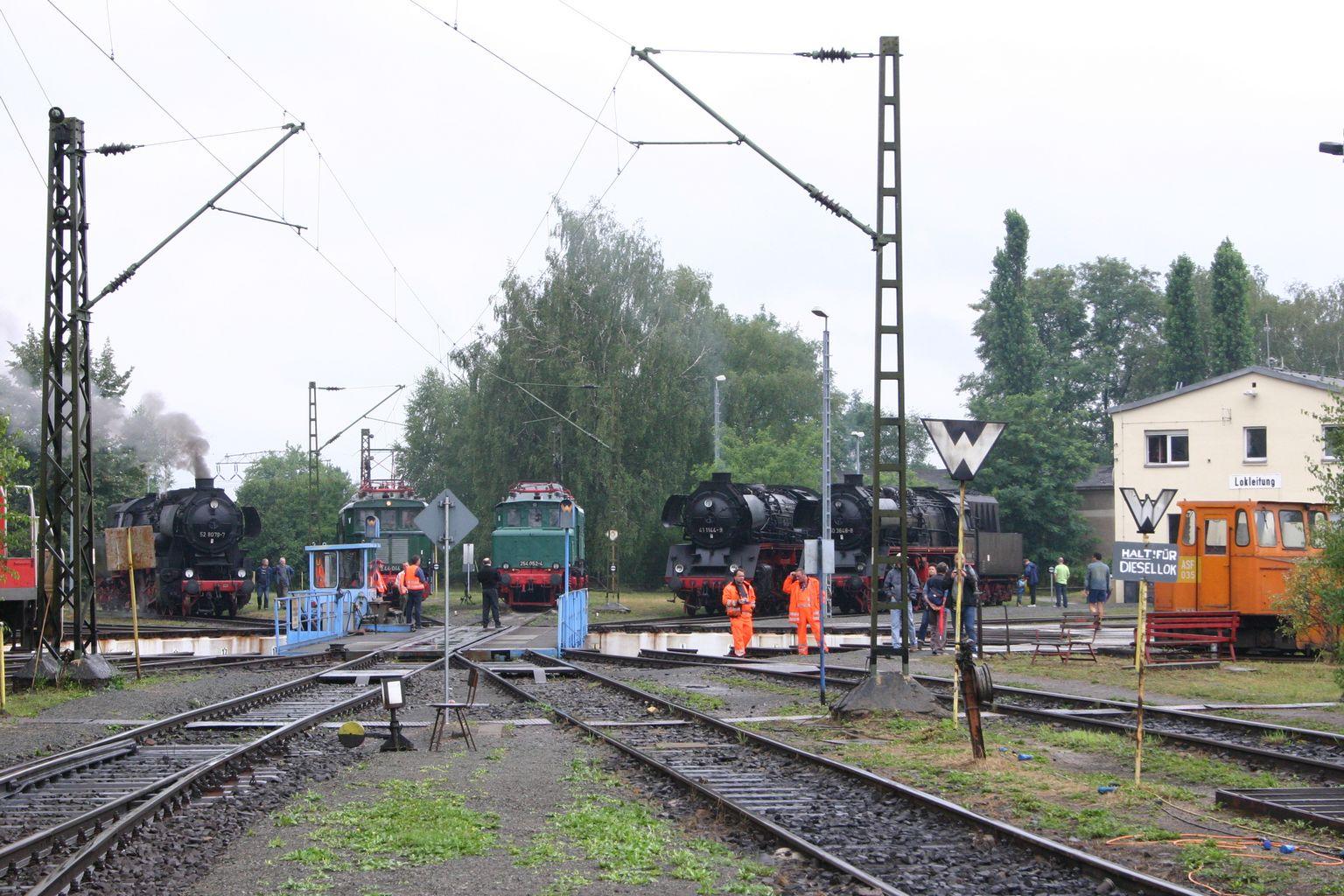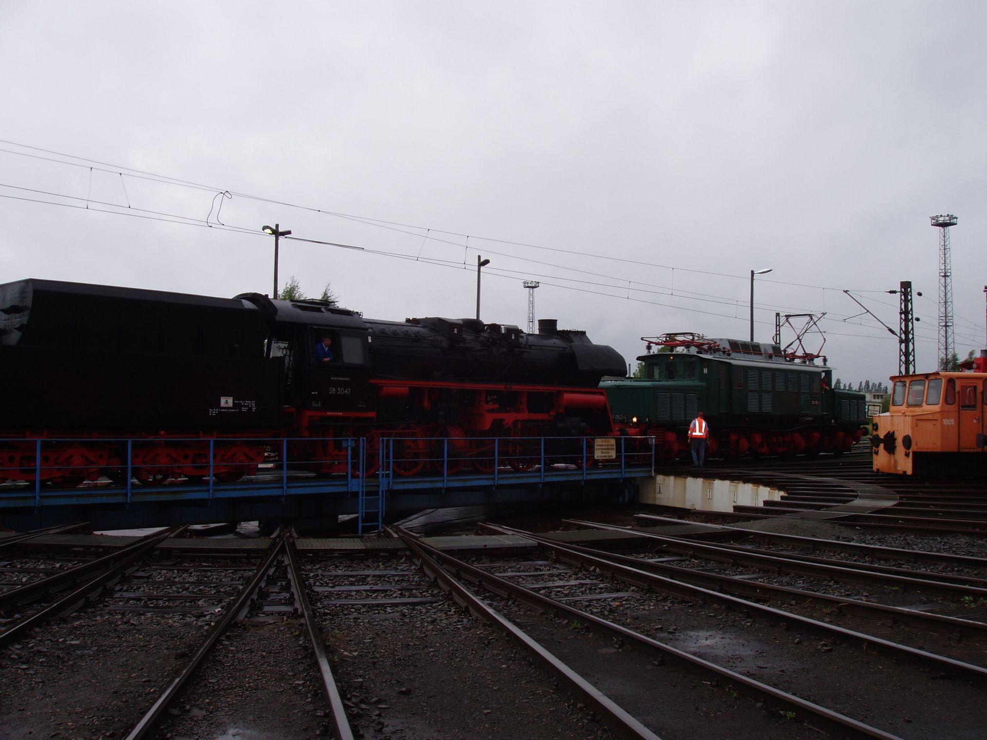 Bin noch am Schwanken zwischen Udos Lösung und einer, die eigentlich am naheliegendsten gewesen wäre. Ich habe nämlich meinen Vater auch heute mal konsultiert (Lokführer in 1:1 und 1:120). Er meine: "Mach es doch wie bei mir im BW!" Ich dachte mich zu erinnern, dass das BW-Engelsdorf keine Oberleitung über die Drehscheibe hat, aber da habe ich mich geirrt!