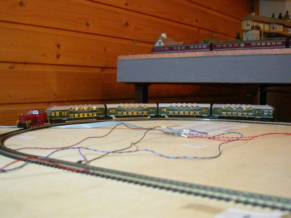 Noch steht der Zug auf dem Testkreis, wird aber bald in den Anlagenbetrieb übernommen, wenn die passende Lok dazu einen Decoder hat.