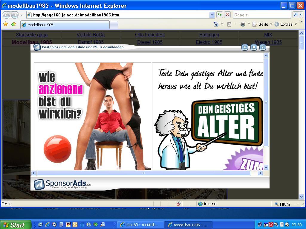 diese Werbung erscheint beim Aufruf deiner Seiten ( http://gaga160.ja-nee.de/modellbau1985.htm ) vor deiner HP (hier der screenshot):