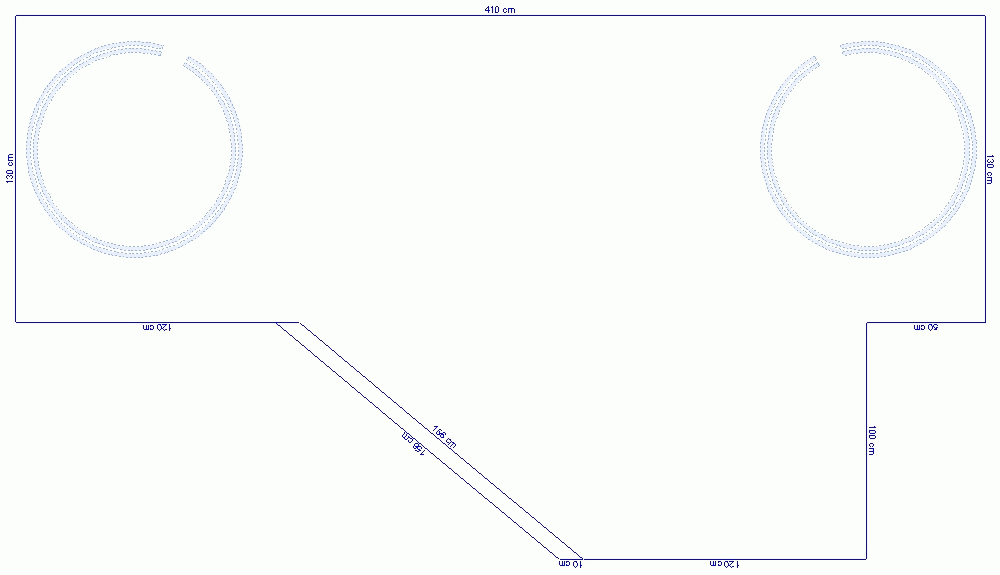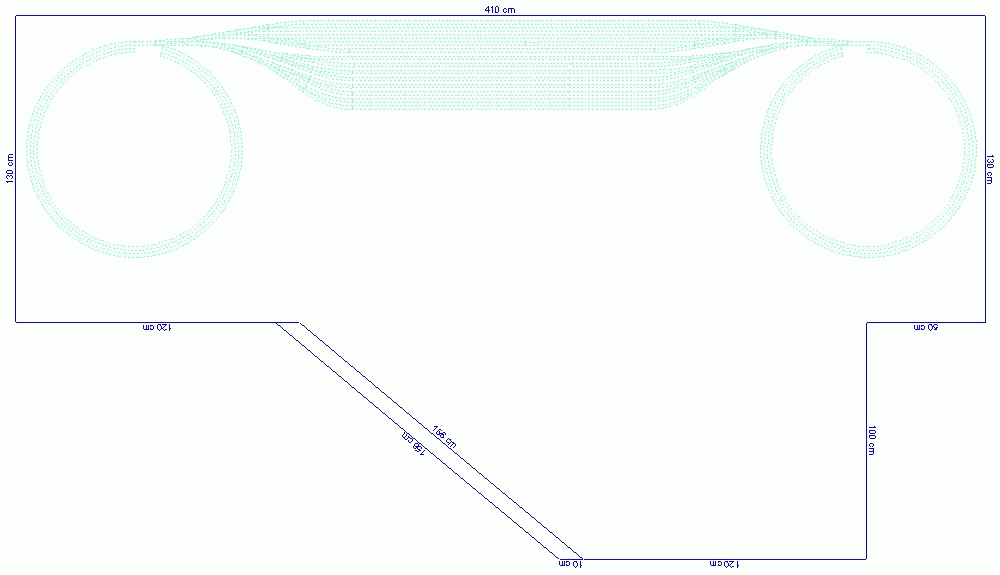 Habe den aktuellen Plan nun zwei Kehrschleifenbahnhöfe (Schattenbahnhöfe) welche über zwei Wendel erreichbar sind. Desweiteren ist es aber auch möglich direkt von einem Schattenbahnhof in den anderen zu fahren (als als Durchgang vom linken Wendel in den rechten und umgekehrt). Somit ist in beiden Richtungen eine Umfahrung der Kehrschleifen möglich.