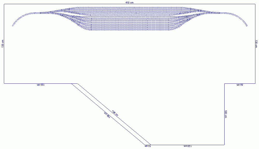 Somit kann ich nun habe ich nur noch 17 Weichen (anstatt 22) wobei nur noch 10 einen Antrieb benötigen (rest wird aufgeschnitten) und ich kann anstatt 13 Zügen nun minimum 23 abstellen. Wenn ich die Züge nicht länger als 1,50 m mache sogar 24 Züge hintereinander + 6 kurze Pendelzüge.