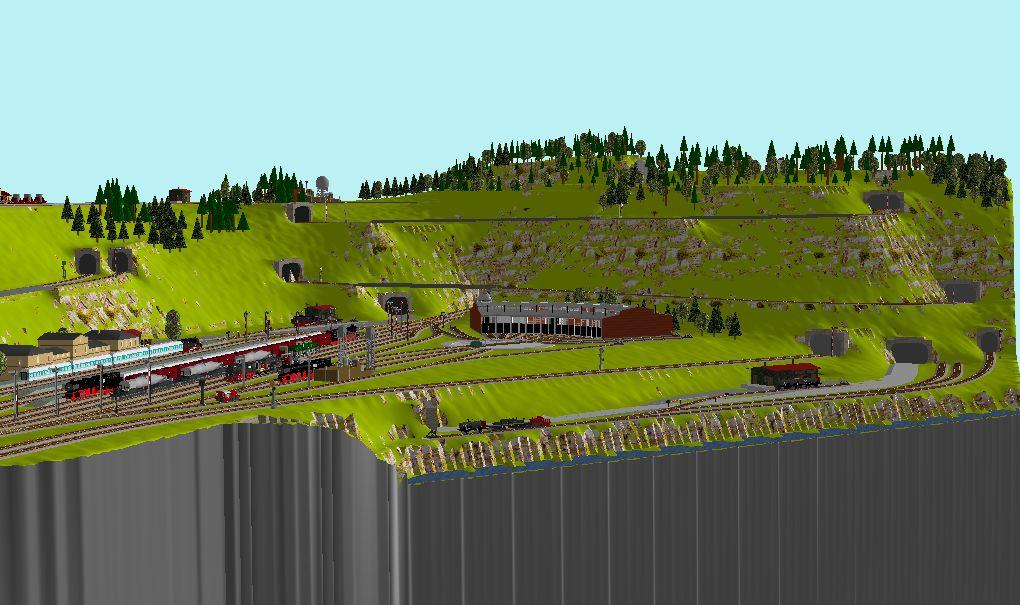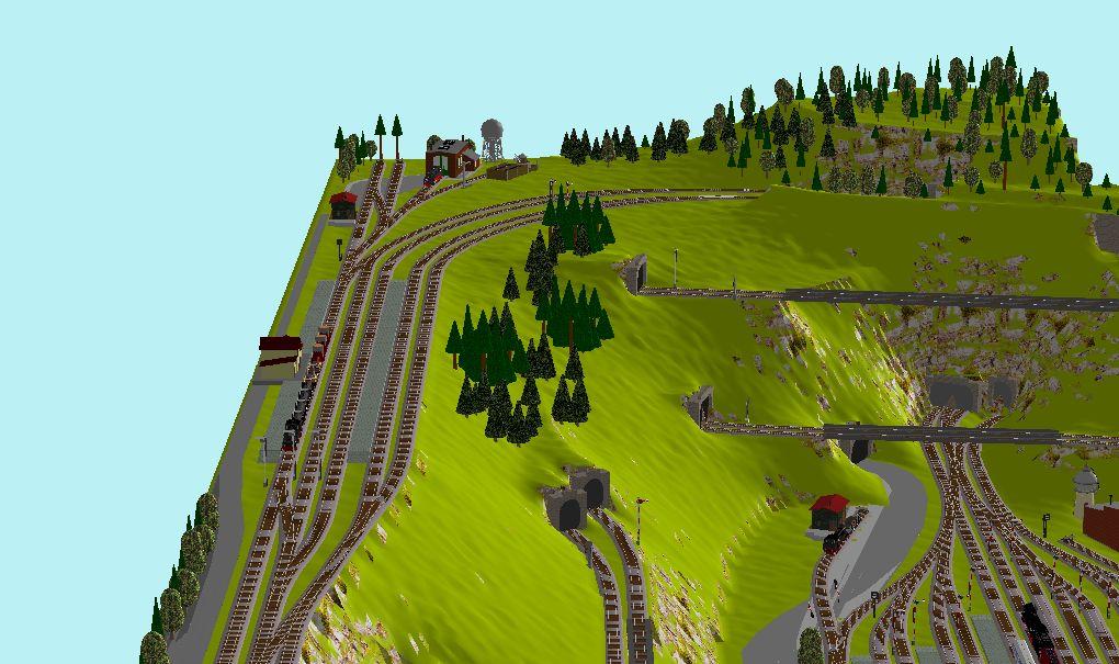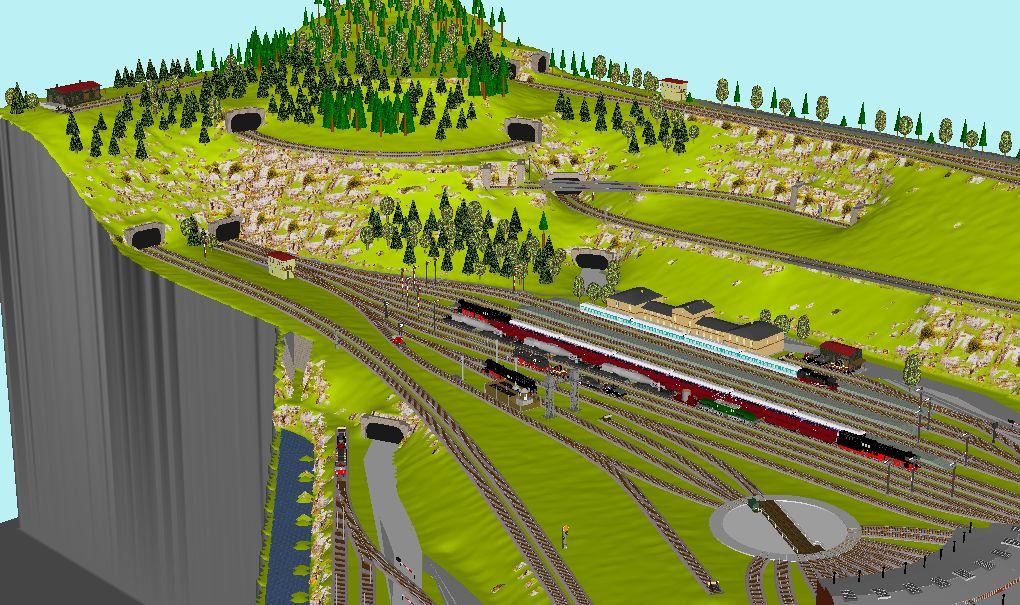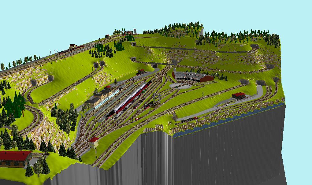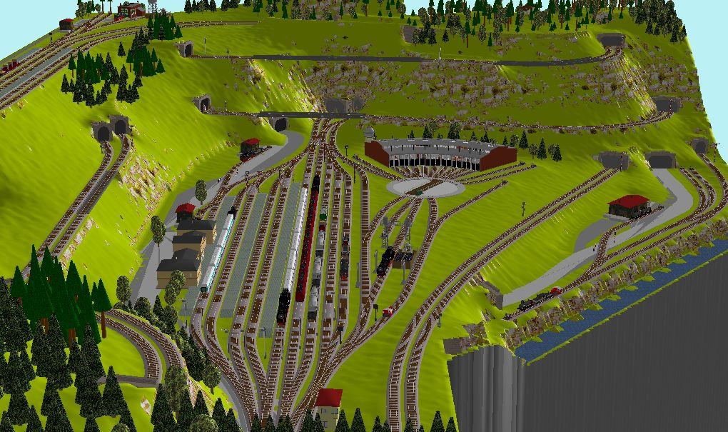 PS: Ich habe soeben bemerkt, dass ich die Abstellgeleise für die Pendelzüge nach unten versetzen muß, damit sie an das bergabfahrende Gleis des Wendel angeschlossen sind. Aber das sollte kein Problem darstellen.