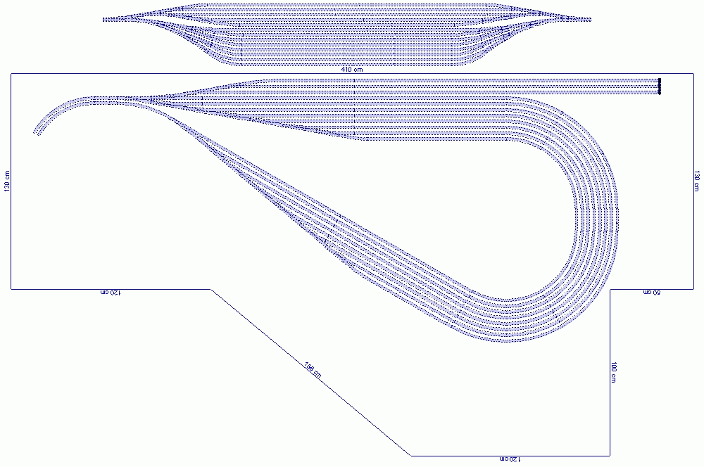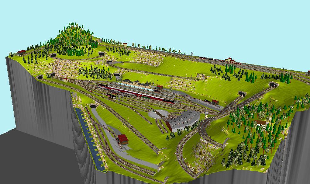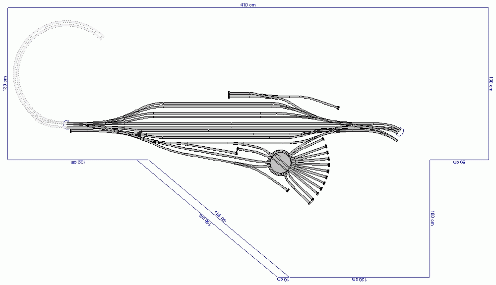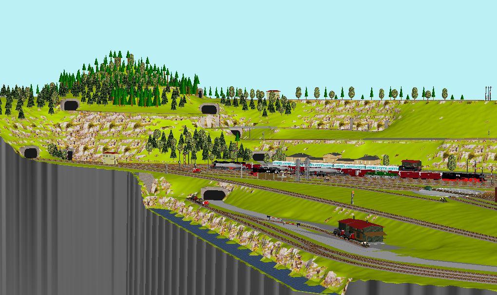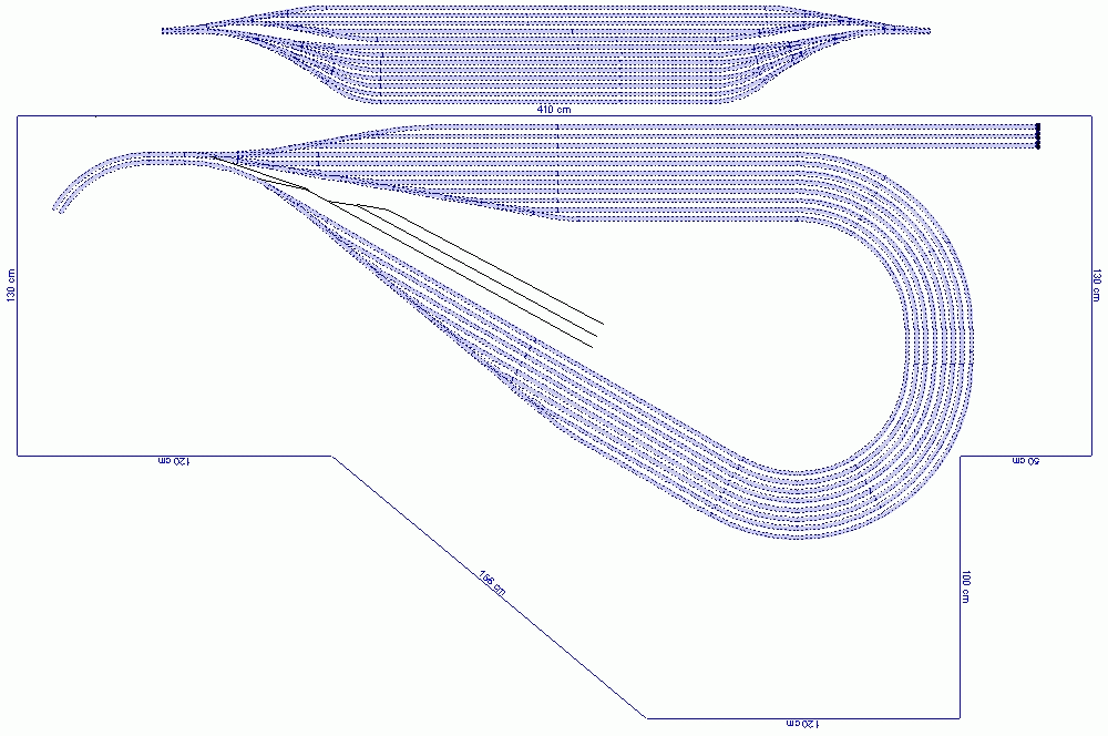 PS: Ich habe soeben bemerkt, dass ich die Abstellgeleise für die Pendelzüge nach unten versetzen muß, damit sie an das bergabfahrende Gleis des Wendel angeschlossen sind. Aber das sollte kein Problem darstellen.