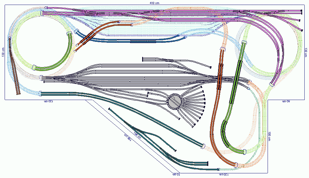 Hier mal der Gleisplan in verschiedenen Ebenen: