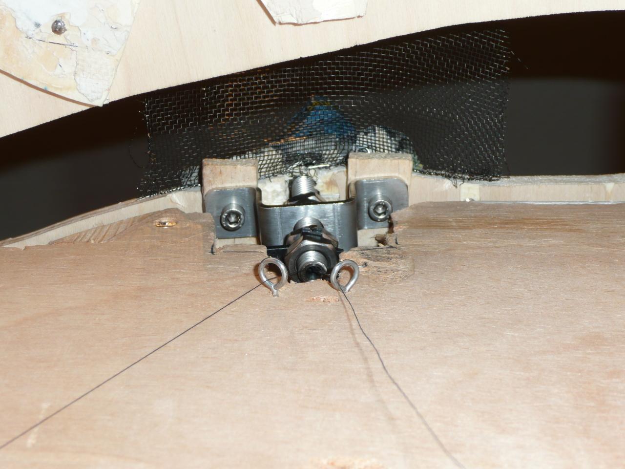 Am Oberteil habe ich ein Rohr mit Außengewinde befestigt durch das die zwei Zugseile und die zwei Kabel für die Diode gefürt sind.