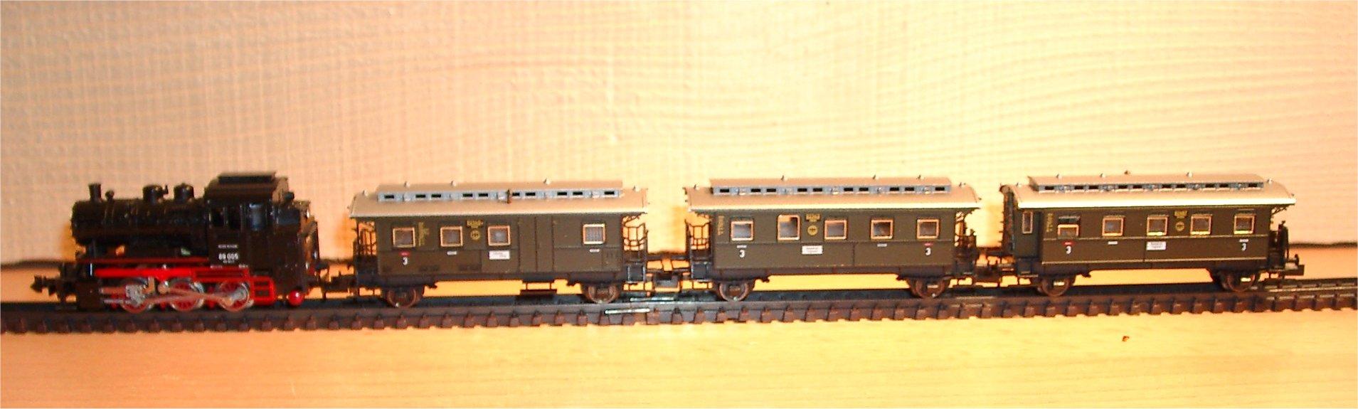 Experimentierzug war der Henschel-Wegmann-Zug mit der 61. Der Grund zum Experimentieren war, dass die zunächst verbauten Schaku von Imotec schlecht an- und abzukuppeln waren. Da ich einen Kopfbahnhof hatte, war das störend.