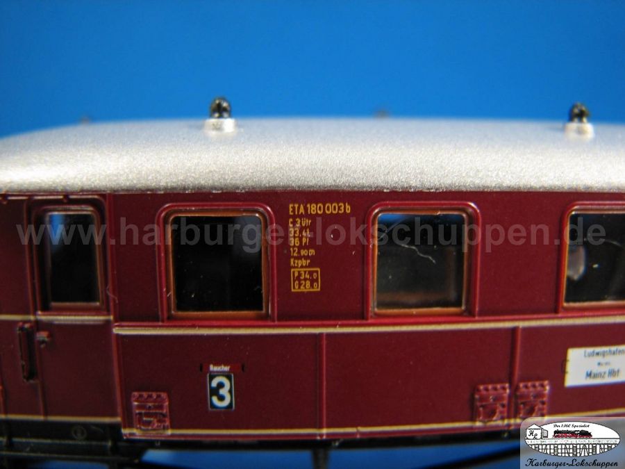 -Fleischmann Verkehrsrot, superdetailliert, noch feinere Bedruckung, Kulissenmechanik an der Kupplung, fahrverhalten über jeden Zweifel erhaben, allerdings mit teuer erkauft