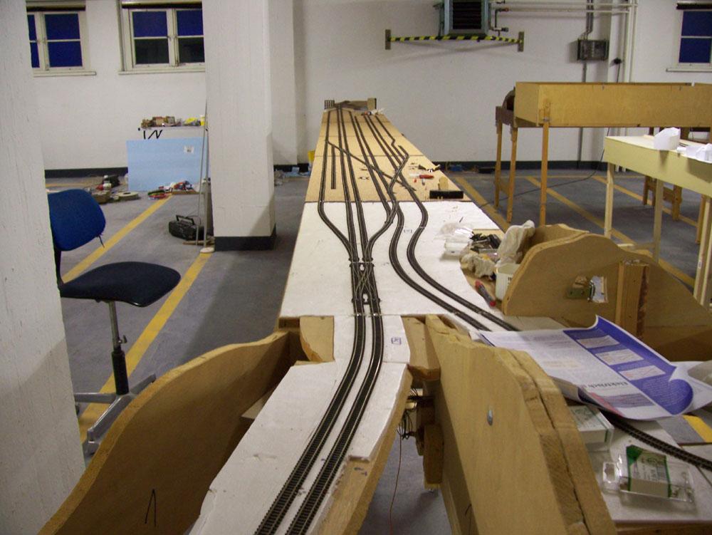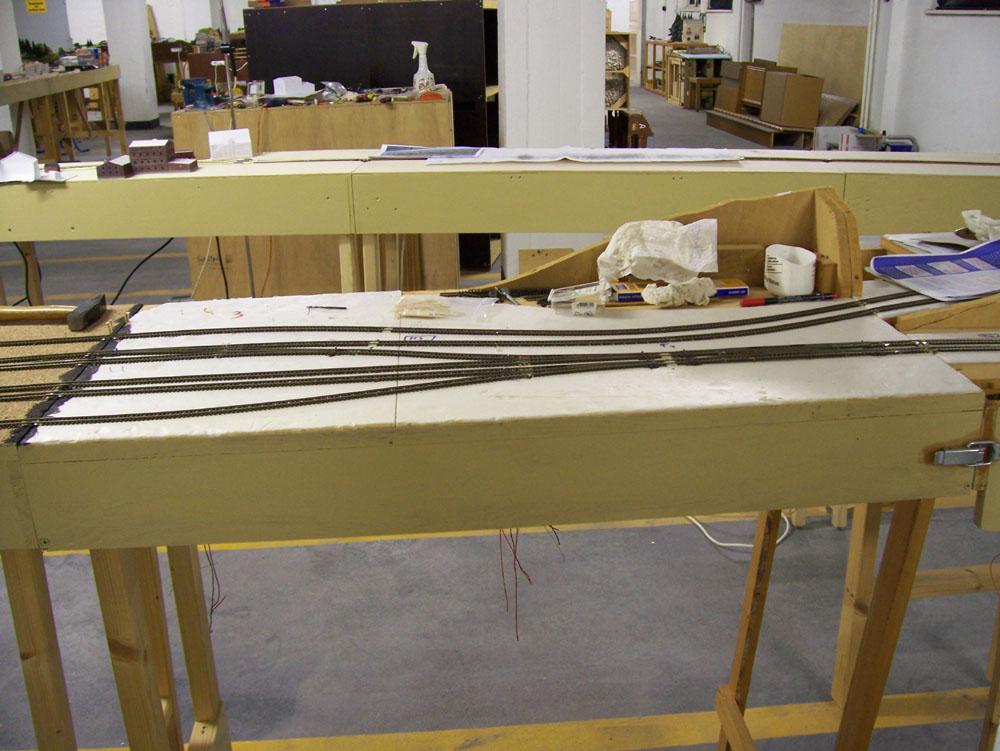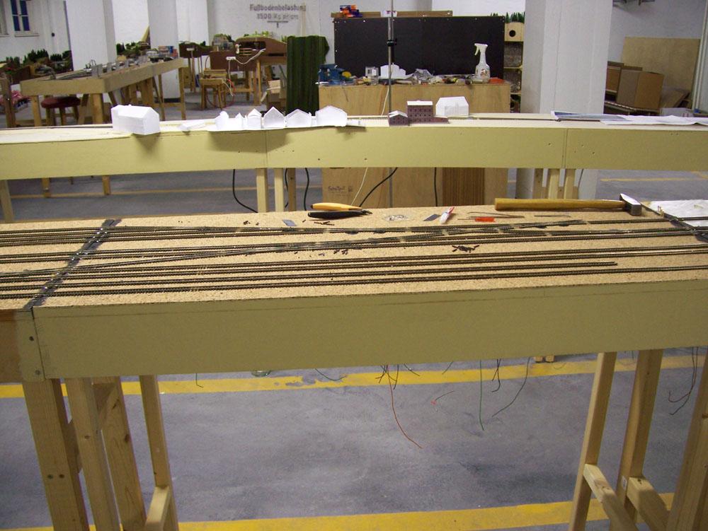 "Ich würde gerne eine Modulanlage (Segmentanlage?) sehen, wo zusätzlich eine eingleisige Nebenstrecke sichtbar läuft, die "untendrin" zurückgeführt wird."