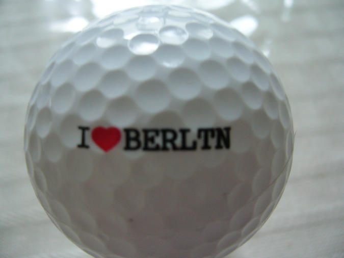 der Golfball ist ein Abfallprodukt aus den frühen Versuchen für die neue Imagekampagne. Man wollte jung und schnell wirken und deswegen hieß es "IloveBERL". Weil man sich das schützen lassen wollte, hat man gleich ™ ergänzt. Leider hat es die fernöstliche Druckerei versemmelt... Und deswegen kommst du zu einem besonderen Stück in deiner Sammlun