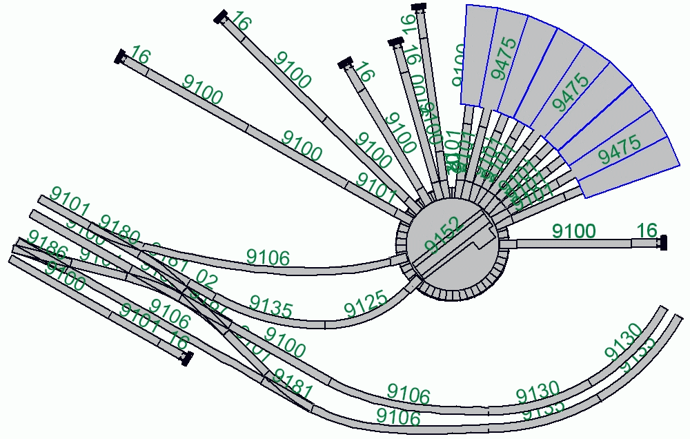 Aber in deinem BW hast du die ganzen bearbitungs gleise vergessen, wio die Entschlackung und die Besandung und die Bekohlung statt finden.