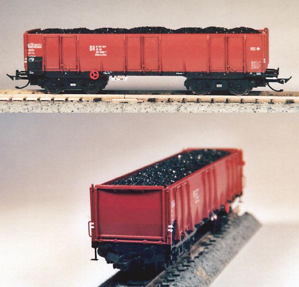 2. die 4-achs. LOWA-Wagen von Piko, haben Drehgestelle der Piko-Kesselwagen erhalten und wurden gleichzeitig etwas tiefergelegt. Unsauberkeiten der Lackierung wurden "retuschiert", neue Puffer, Handräder. Erfolgte ca. Ende der 90er. Später Nachrüstung Griffstangen, Stellhebel und Rangiertritte von Kuswa, Hammerschmid-Kupplung .