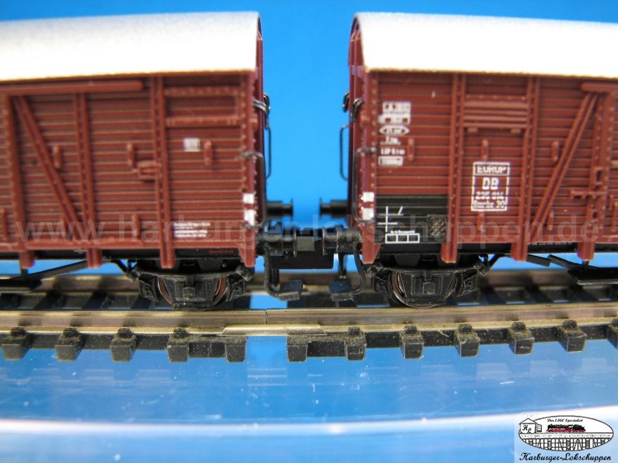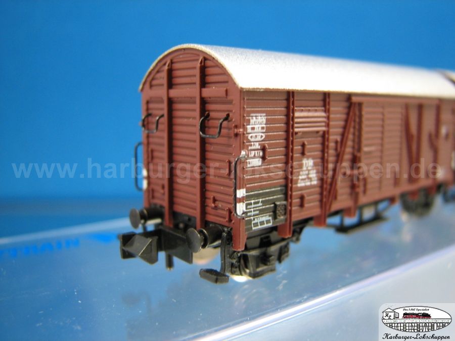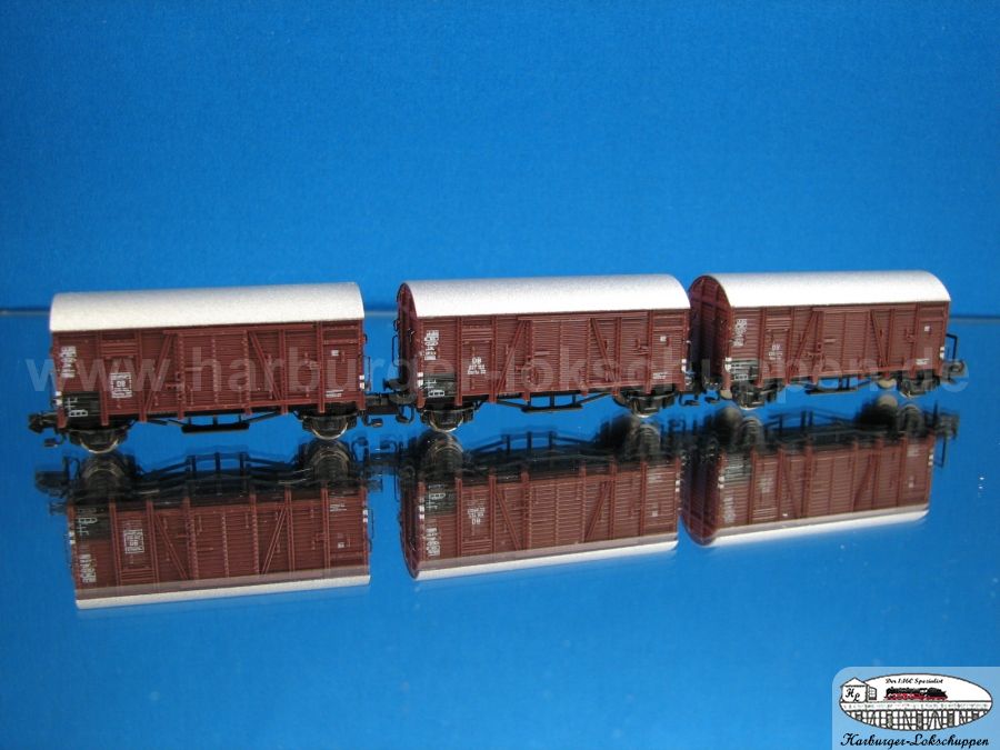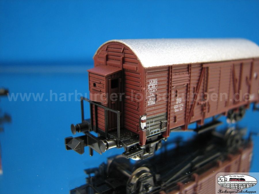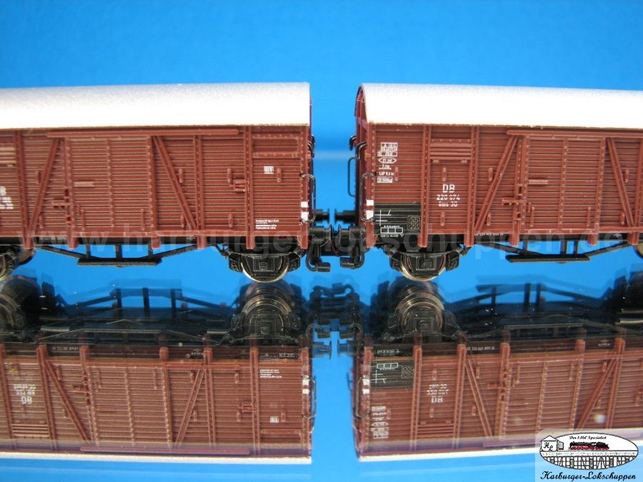 ich habe mir heute das Set in Epoche II - Ausführung bei meinem Händler angesehen. Da an einem Wagen die Farbtrennung zwischen Dach und Wagenkasten nicht sauber war und bei zwei Griffstangen aus Metall die scharze Farbe durch die Verpackung bedingt abgerieben war, habe ich das Set nicht mitgenommen und warte auf die Nachlieferung. Die Beschriftung ist bedingt durch die Bretterstruktur unterschiedlich gut zu lesen. Die Trittstufen stehen teilweise etwas schief, sind angesteckt und fallen relativ leicht ab. Für den Anlagenbetrieb würde ich sie wohl mit Sekundenkleber fixieren. Die Kupplungen haben auf den ersten Blick etwas wenig Bewegungsspiel. Diesbezüglich bin ich mal auf erste Berichte aus dem Betriebseinsatz gespannt. Die Hülsenpuffer wirken etwas massiv, ansonsten ist die Detaillierung des Wagens wirklich gut. Werde mir das Set auf jeden Fall auch noch zulegen.