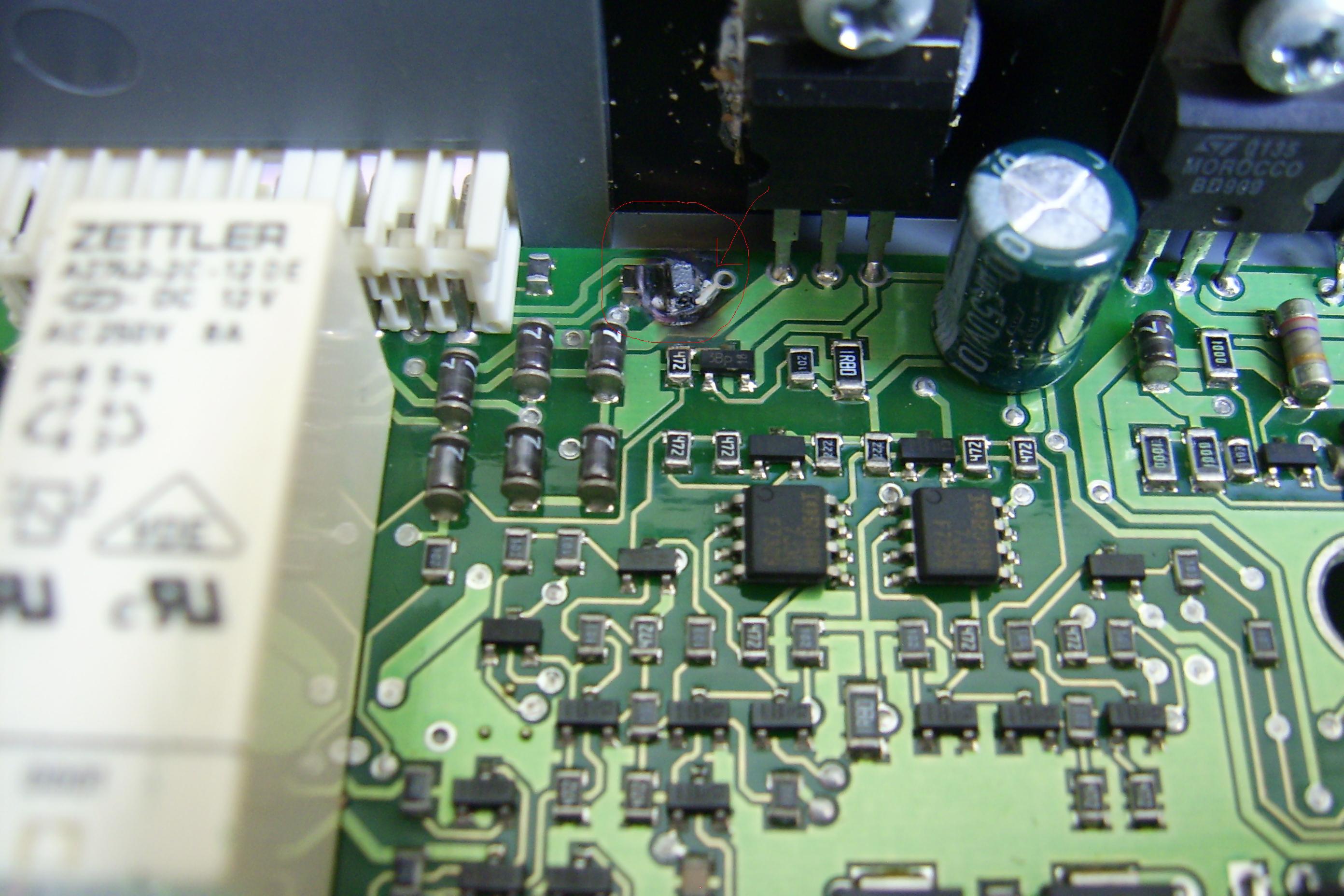 Vom Bild her zu schließen ist das Bauteil durch Überlast gestorben. Scheint aber ein Folgefehler zu sein. Platzmäßig paßt da nur eher kleines wie Widerstand odglm. hin. Daher vermute ich daß der Verursacher wo anders sitzt.