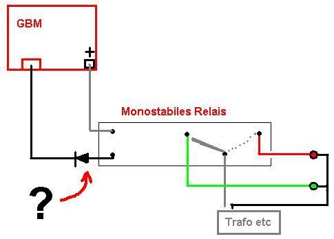 Wie schalte ich eine Freilaufdiode zwischen Gleich-spannungsquelle und einem monostabilen Relais?