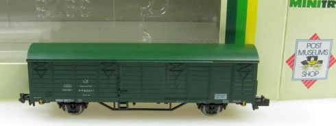 ich habe in einem Geschäft einen Wagen von Minitrix für den Post-Museums-Shop entdeckt. Es ist ein Schiebewandwagen Silber/braun mit der Nummer 66-02, wie er auch bei Spurweite-N geführt wird.