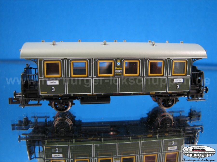 Ich habe die bayerischen  Mtx-Wagen aus dem Ludwig-Thoma (?) Set. Diese Wagen tragen im Gegensatz zu den GFN die korrekte Farbgebung mit hellen, fast weißen Dächern und den Bühnengeländern in grün mit Zierstreifen. Daher auch meine Fragen zu den GFN-Wagen. Ich werde mir daher von GFN nur den Gepäckwagen und die Pt 2/3 zulegen, der Gepäckwagen ist von Mtx nicht erhältlich. Da muß dann nur das Dach umlackiert werden.