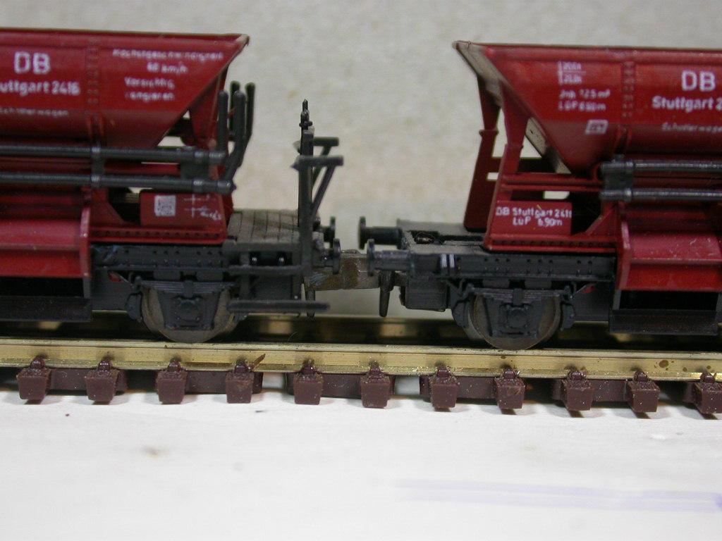 Die Kupplungen, die mir zu lose erscheinen, werden erstmal in 2-achsige Güterwagen mit geschlossener Kupplungskammer eingebaut.
