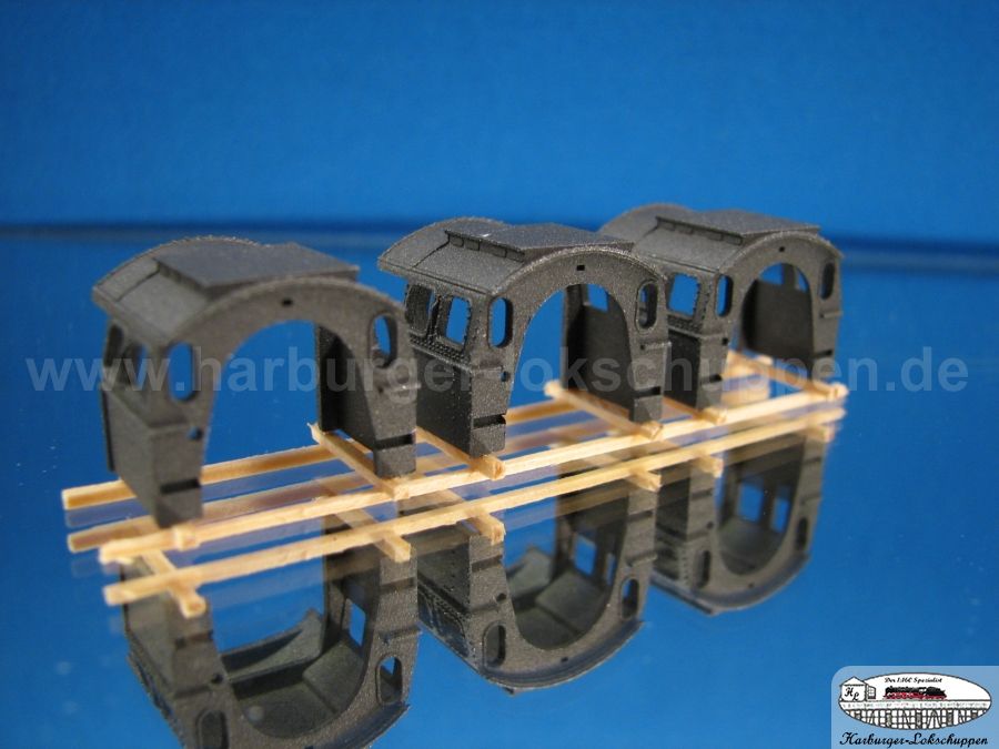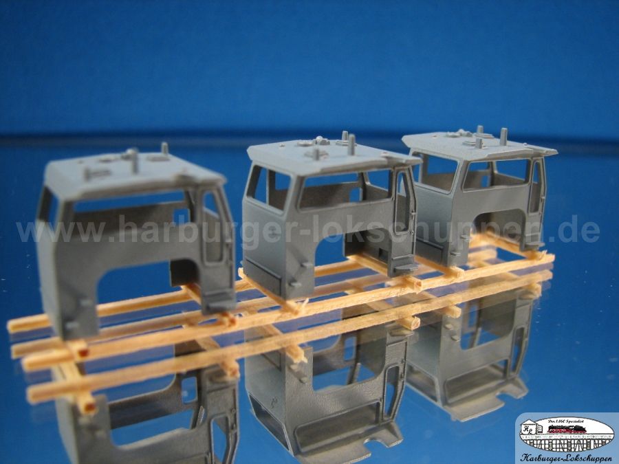 Artikel: HC16005 Ladegut mit 3 Diesellok Führerhäuser aus Kunstoff in grau