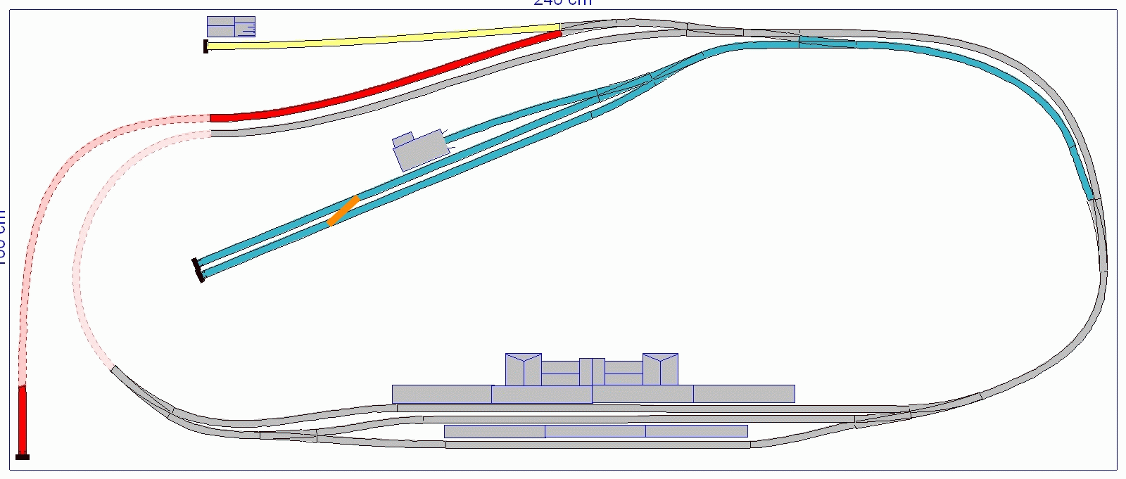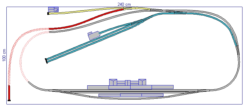 Rot: langes Abstellgleis für einen langen Zug