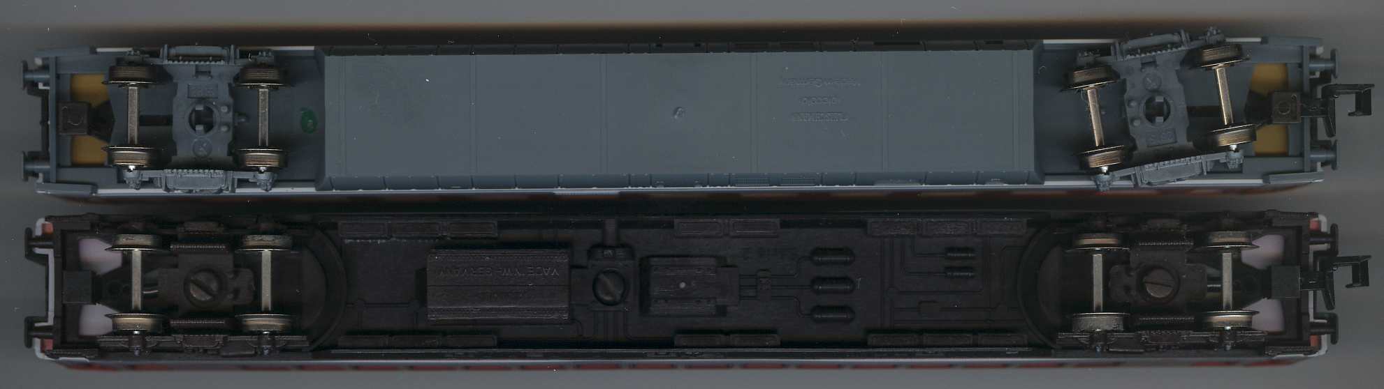 Mit letzteren habe ich Probleme bei fahren in den Bögen R1/2. Die Drehgestelle scheinen nicht beweglich genug zu sein. Kuppeln mit der 9545 geht es schwerer als normal, haben dann aber einen traumhaft geringen Abstand, besser geht es nicht.