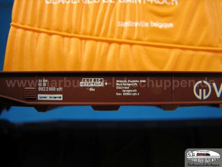 Die Wagen sind Top Klar bedruckt mit: Vereinigte Glaswerke GmbH, Werk Herzogenrath,Glassstr und der Telexnummer, dies kann man hervorragend durch die Makrofotoaufnahmen lesen.