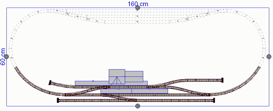 Bei einer Anlage 60x150 würde ich keine doppelgleisige Strecke empfehlen, das wird sehr eng. Wenn du unbedingt längere Fahrzeuge verwenden möchtest, wie wäre es denn mit so etwas ähnlichem: http://666kb.com/i/b55hgja70zkzh2wsu.jpg