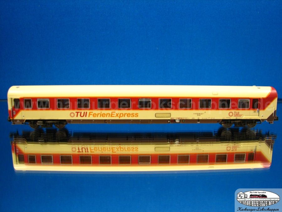 Anfangs fuhren die TUI-Ferienexpress Züge noch in reinen Garnituren. Mit der Zeit wurden auch Kurse zusammen mit DB-Wagen gefahren. Eine kleine Zusammenstellung findet sich, neben noch vorhandenen Bildern von Heinrich Priesterjahn, in in diesem Thread. Ebenso etwas über den TUI-Liegewagen der einmal wöchentlich fahrplanmäßig einem IC als Einzelläufer angehangen wurde.