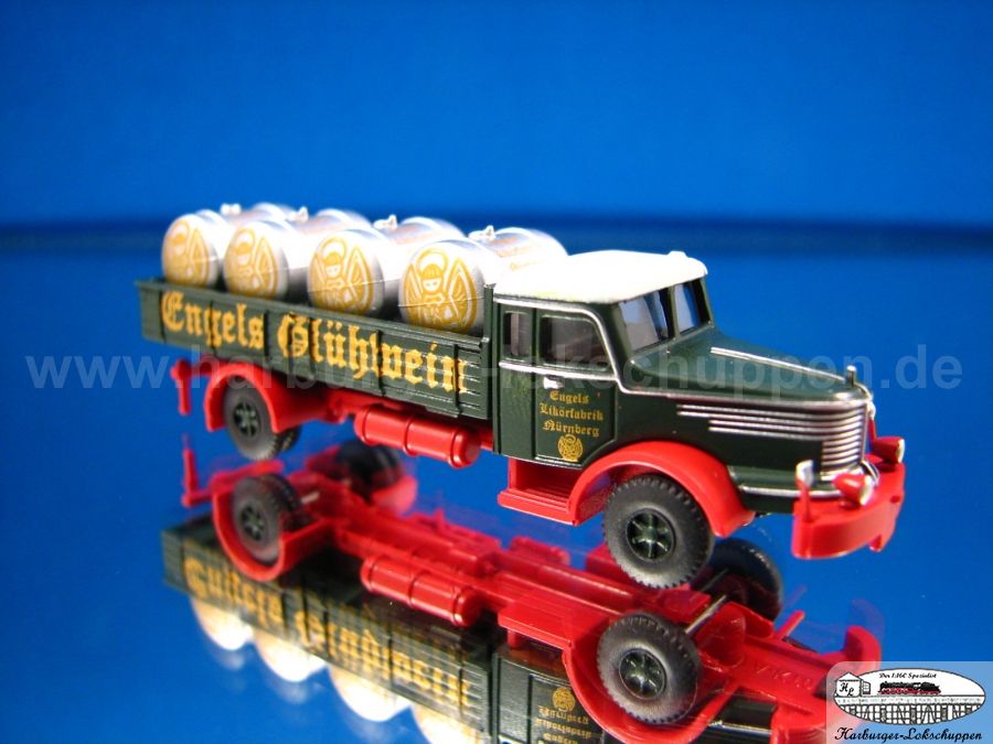 4. Lemke LKW Krupp Titan Sondermodell Weihnachten 2008 mit Aufschrift Engels Glühwein und 4 beladenen abnehmbaren Fässern. (Wäre schöner gewesen vor Weihnachten..   ) Aber es ist ja ein Sammlermodell mit geringer Auflage.