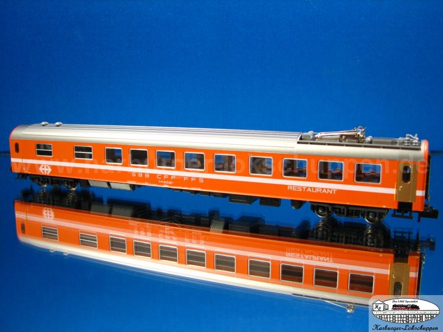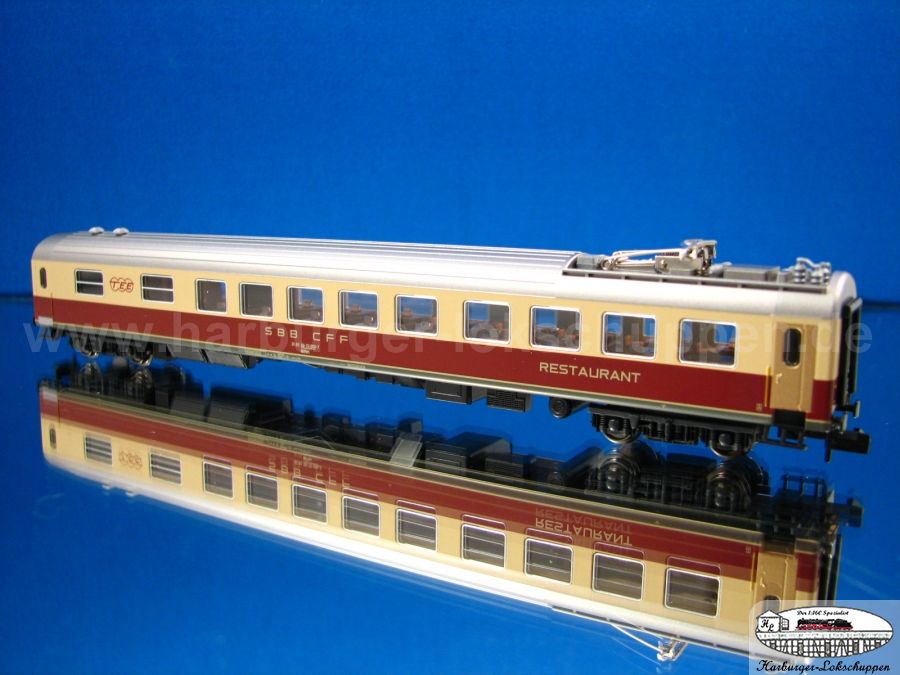 3. Kato SBB RIC TEE Epoche: 4 bis 5 Restaurantwagen Creme-Rot mit panto und beleuchten LED Tischlämpchen