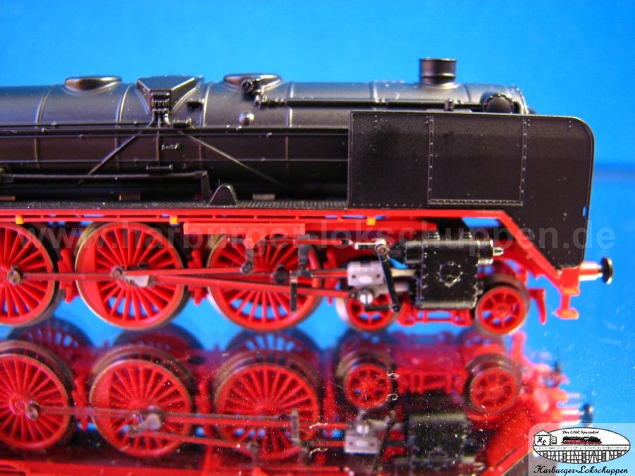 Grundsätzlich kann man sagen ist dies ein schönes Modell geworden. Die Lok hat schon eine gewisse Eleganz. Brünierte Räder, 5pol Motor (ohne Schwungmasse) im Tender mit Verbindung mit der Kardanstange (Kunstoff) in die Lok. Die Digitale Schnittstelle befindet sich frei zugänglich (durch öffnen des Kohlendeckel) im Tender.