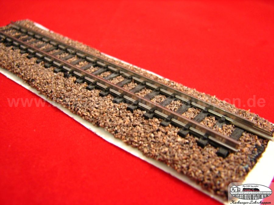 Für Spur N schneidet man dieses einfach mit dem Messer oder Schere mitten durch. Somit 20 Meter Gleisbettung.