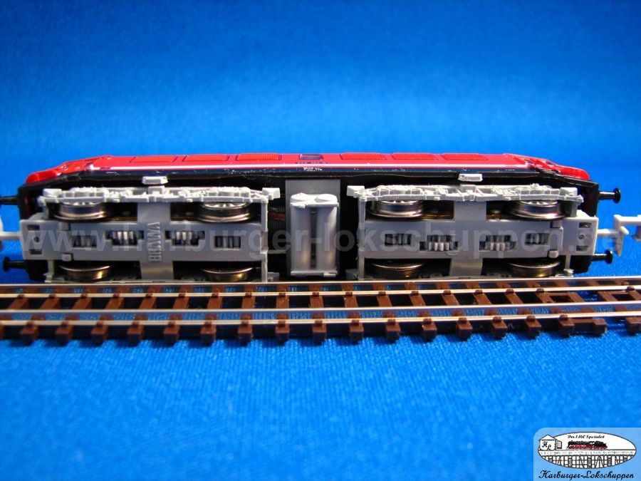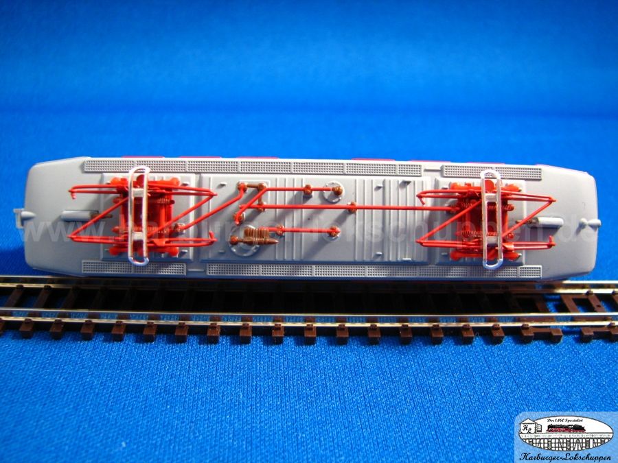 Nach Abnahme des Lokgehäuses (4 Puffer abziehen, Gehäuse spreitzen) liegt hier die Begründung das man dort keine LED, sondern eine Glühbirne verwendet hat. Dies halte ich für keinen Fortschritt. bezw. warum hat man dieses Modell nicht etwas überarbeitet ?