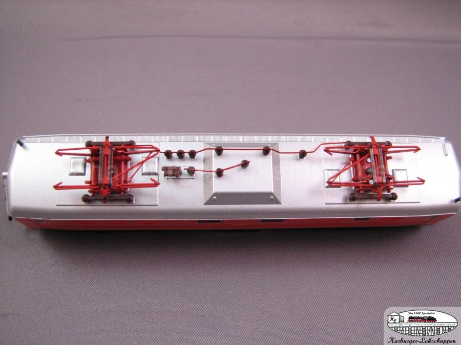 Das dargestelle Modell in Ablieferungszustand mit blutorangem Lack dürfte allerdings wirklich etwas "exotisch" sein. Die Umlackierung muss irgendwann in den 1970er Jahren stattgefunden haben. Dabei erscheint es recht unwahrscheinlich, dass nicht gleichzeitig auch Fenster und/oder Pantographen getauscht wurden.