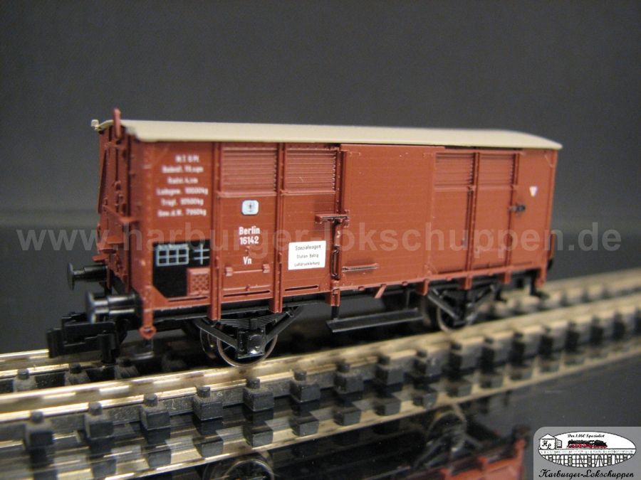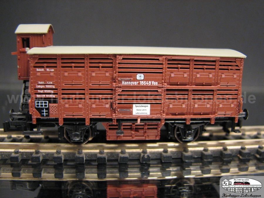 wie Andreas es schon schreibt, schade, daß es wieder keine Stangenpuffer an den Fahrzeugen gibt. Dafür ist nun endlich die Dachfarbe der gedeckten Güterwagen korrekt, und auch die Farbgebung der Lok stimmt. Sehr löblich, daß auf Zierlinien verzichtet wurde. Die Führerhausfenster sind korrekt, und die Kesselaufbauten auch, muß das aber nochmal vergleichen.Schön, wäre es, wenn auch der "Automat" nachgebildet worden wäre, aber darauf hätte ich kaum gehofft. Wenn das Digital-Set kommt, wird dieser Zug wohl auch bei mir einfahren, zusammen mit dem Ergänzungsset und dem Schienenwagenset, wenn die erscheinen.