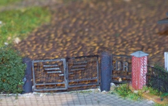 Das Tor steht im Original ca. 500m von meiner Wohnung, lediglich den Personendurchgang habe ich frei Angepasst. Das mit dem DB-Symbol ist eine gute Idee, nur muß ich da erst die Frage klären, wo ich mich erkundigen kann, ob ich das Symbol so einfach anbringen darf, denn die DB existiert ja noch, und es ist ja kein Eisenbahnfahrzeug, wo man es problemlos nutzen darf.