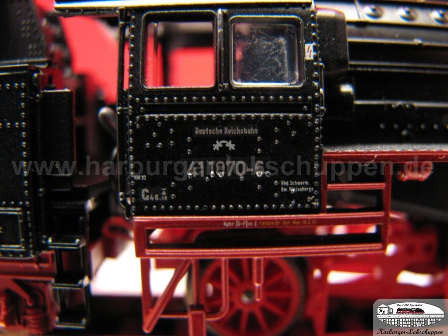 - an der Frontschürze sind Klappen vor den Zylindern, die gab es bei der 41 nicht, bei DR (auch 41 070-6) sind dort jeweils 2 Trittstufen