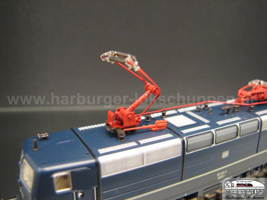 Ob die Umrüstung auf einen Panto moderner Bauart dem Modell zuträglich ist, mag jeder selbst entscheiden. Anbei nochmal die beiden Pantos im Vergleich.
