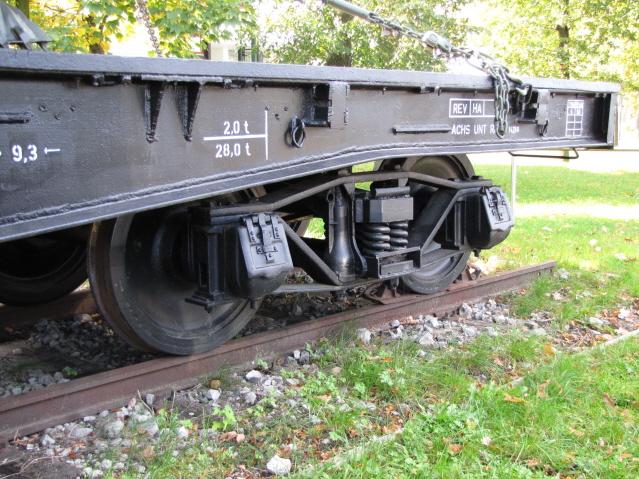 Ich hab´ den Waggon erst als amerikanische Bauart ausgemacht, dann konnte man aber auf einem Schild lesen, daß es sich dabei um einen russischen Waggon handelt der mit "deutschen" Drehgestellen versehen ist.