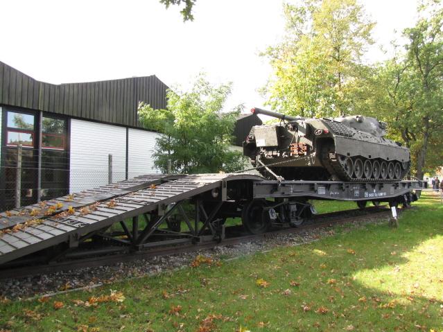 Hintergrund: Wir waren gestern im Deutschen Panzermuseum. Dort steht ein Waggon mit einem Panzer beladen vor dem Eingang.