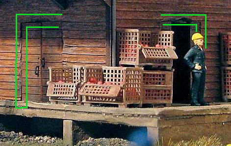 die Türen werden hinter die Außenschalung geklebt, dementsprechend ist die Ausparung im Karton größer als die in der Holzwand.