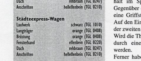 danke für deinen so umfangreiche Beitrag. nur ich kenne kein einziges Bild oder Fachbuch wo ein Städteexpress abgebildet ist die Wagen mit rehbraunen Dach hat. Noch nicht einmal einen einzelnen Wagen. Und so lange das so ist kann man doch mal den Wunsch äußer das die Wagen mir graune Dach geliefert werden.