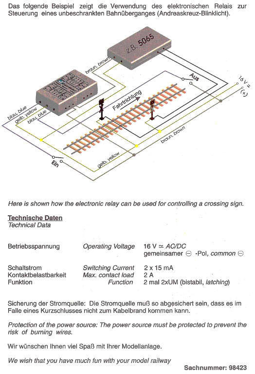 für den automatischen Betrieb zusätzlich elektronisches Relais Kat.-Nr. 5552 und Schaltgleise bzw. Schaltkontakt Kat.-Nr. 6840 erforderlich