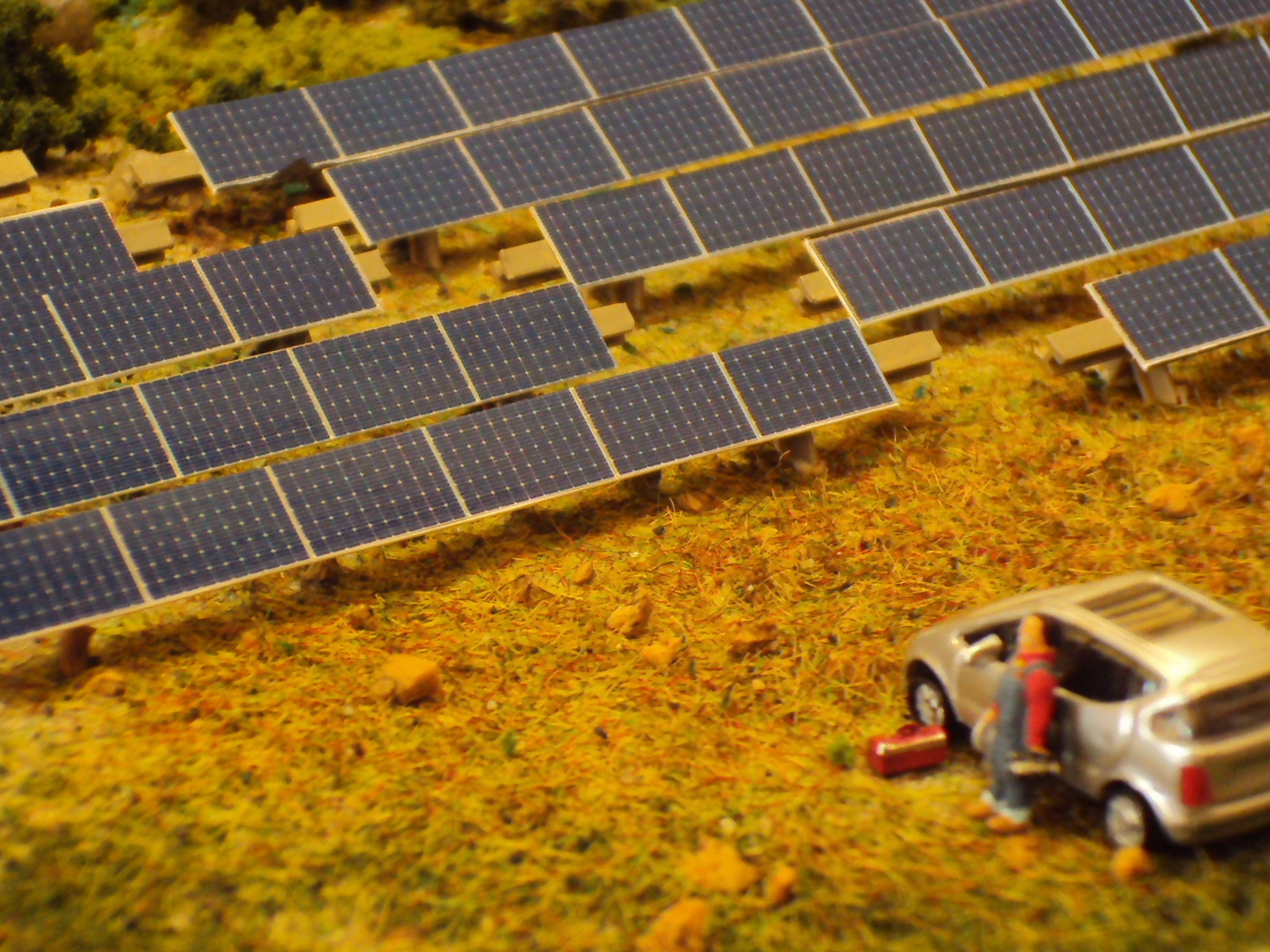 vielleicht gibt es ja noch Interessenten an Ideen für einen Solaranlagen-Nachbau. Ich habe eine kleine Freiflächenanlage gebastelt. Dabei habe ich meine Solarmodule auf Fotopapier gedruckt und auf kleine H-Träger montiert. Siehe Baubericht: http://www.steffen-krumbholz.de/photovoltaik.html