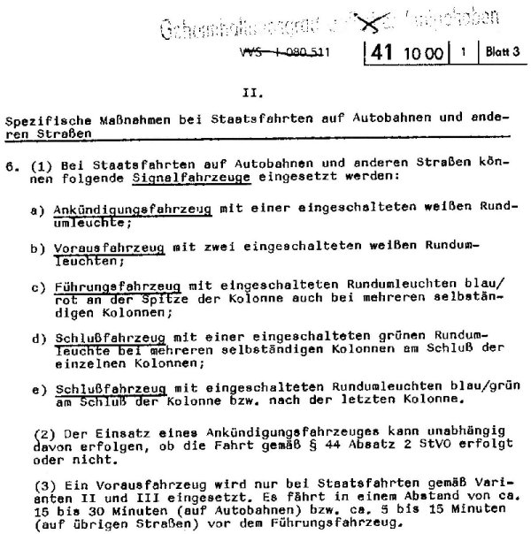 Ich schrieb aber von den "Ankündigungs-/Vorausfahrzeugen", die lt. #92 mit WEISSER Rundumleuchte 15-30 bzw. 5-15 min vor der Kolonne fuhren. Mit denen hätte ich nichts anfangen können.