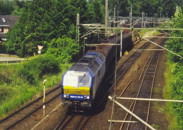 Nichts desto trotz.... eine schöne Maschiene, die auch ich gerne in meinem Bestand hätte.... und es müssen ja nicht unbedingt die Married-Pair-(Marschbahn)Wagen sein... Einmal hat die Loktype auch einen Zug aus (ich glaube) Selbstentladewagen gezogen... Bild suche ich mal raus, müsste davon noch eins haben...