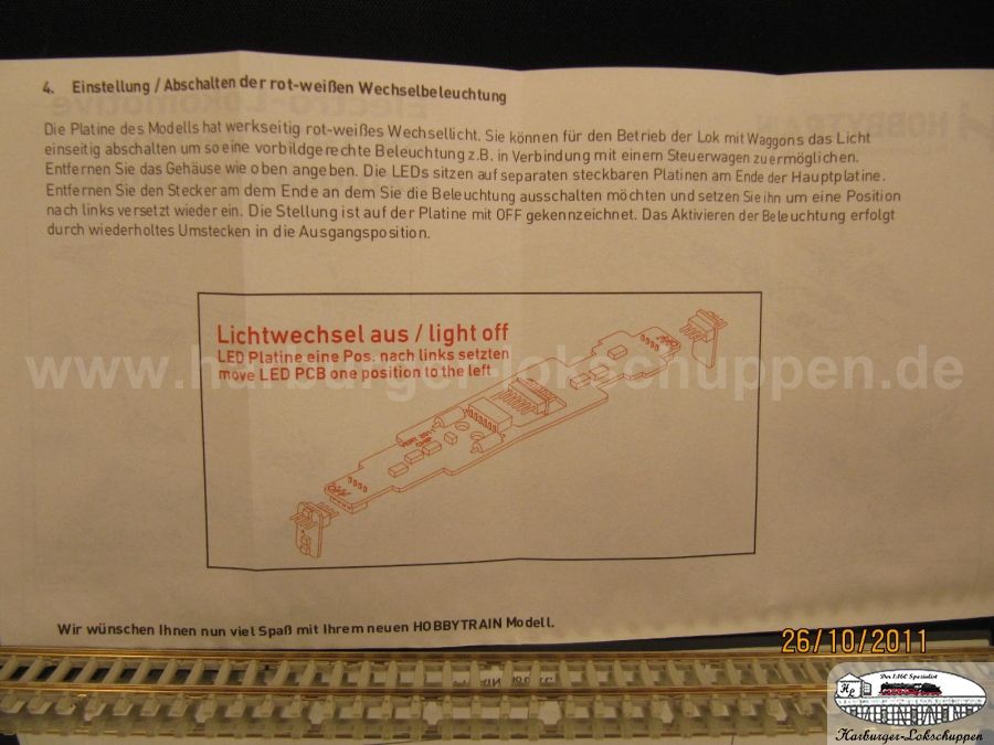 Um das Rotlicht auszuschalten, muss man die Lok öffenen und die LED Platine umstecken.
