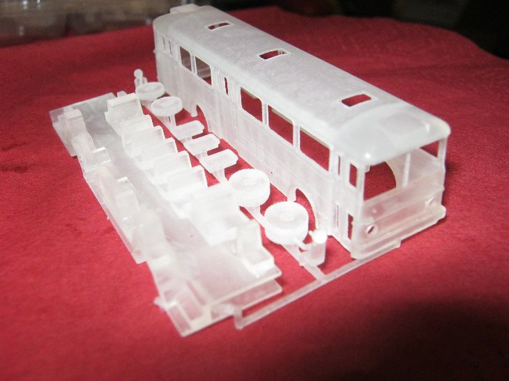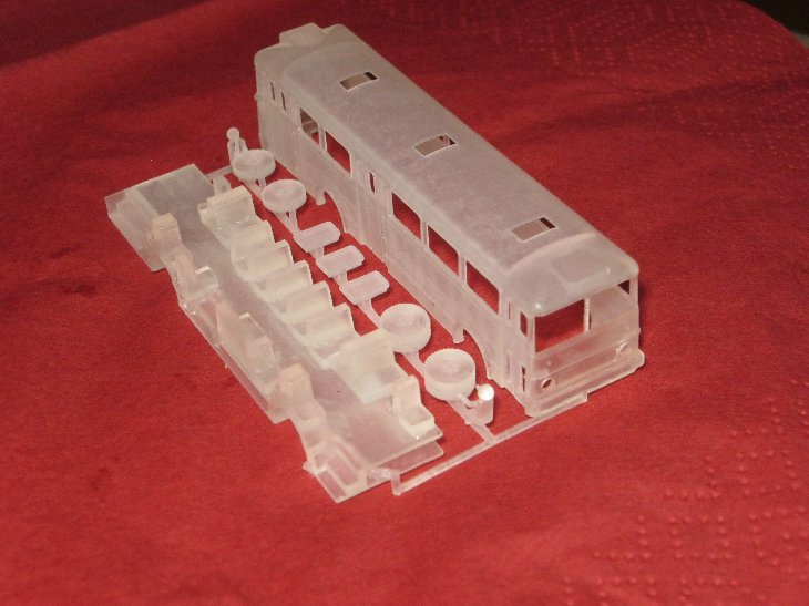 Derzeit probiere ich, den Wagenkasten entsprechend zu grundieren. Innen dunkel zu grundieren macht schon Sinn. Wegen der Transparenz von FUD müsste ein heller Lack sehr dick aufgetragen werden, der die Details verschließt. Somit sollte eine Beleuchtung, möglich werden.