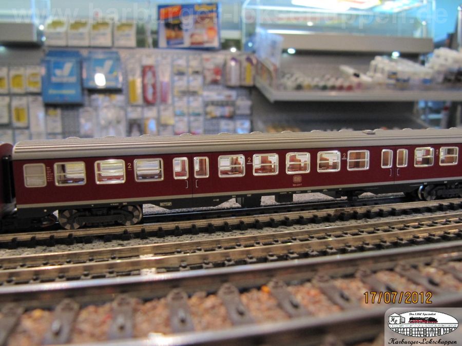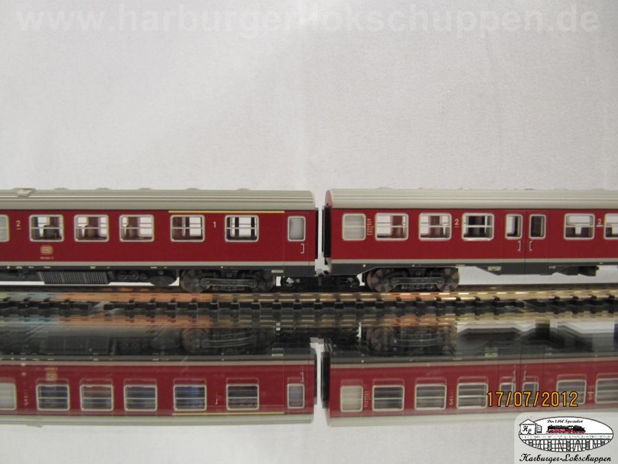 Zur Optik ist kaum was zu sagen, die Bilder sprechen für sich. Einzige Kritikpunkte: die bunten Kabel an den Stromkupplungen sind bei Seitenansicht unschön zu sehen (siehe auch Ingos 5. Bild), und die Betriebsnummern sind bei allen Wagen minmal schief. Die Bertiebsnummern beider Endwagen sind unterschiedlich.